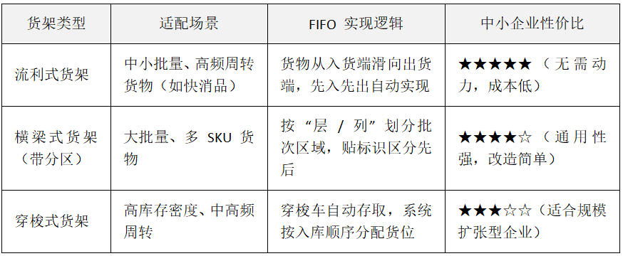 2. 貨架選型:低成本適配 FIFO 的核心工具